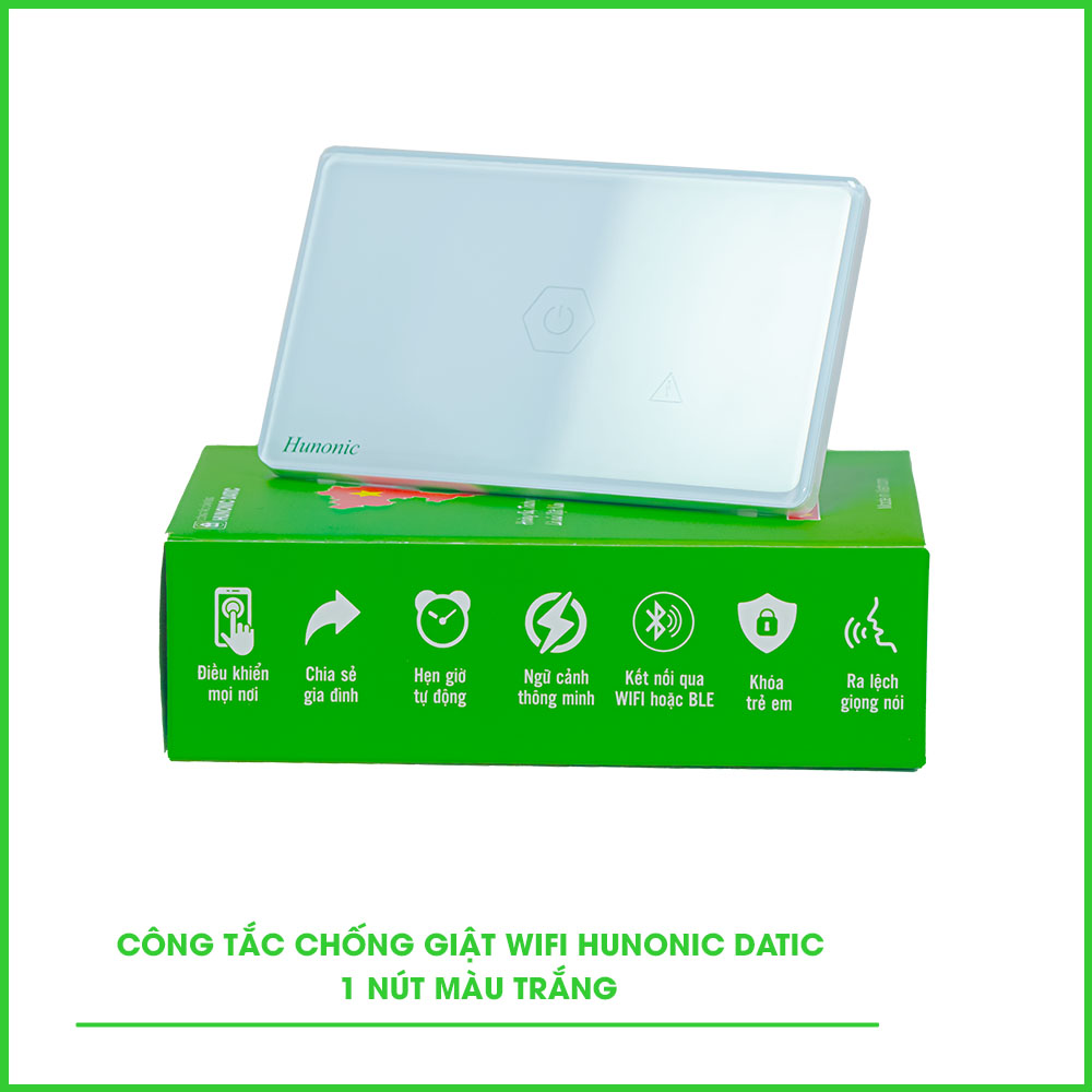 Công Tắc Chống Giật Wifi Hunonic Datic Màu Trắng